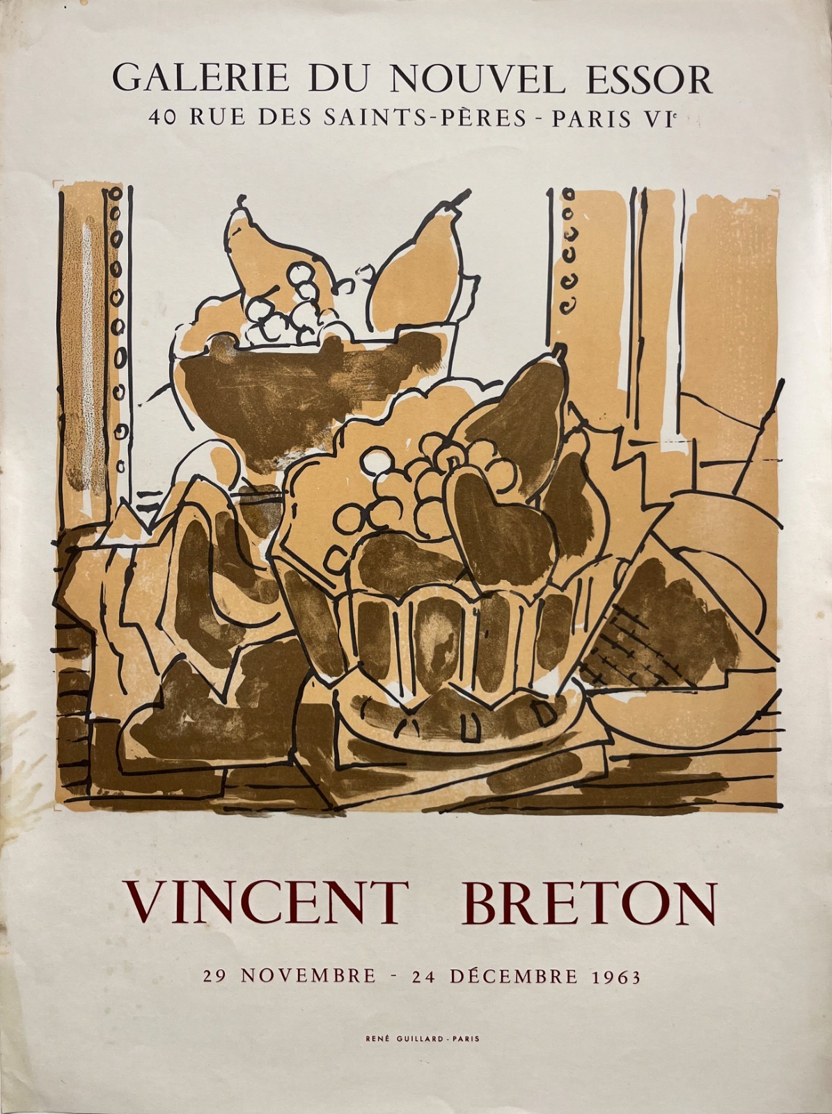 V. Breton à la Galerie du Nouvel Essor – Affiche Expo Litho René Guillard 1963