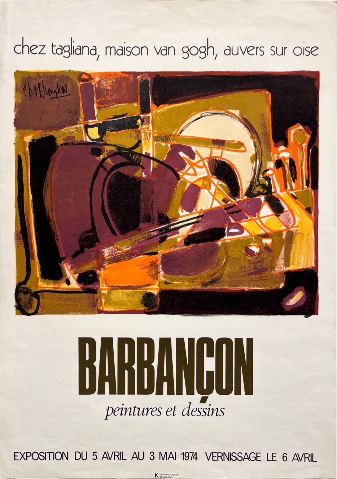 Barbançon chez Tagliana, Maison Van Gogh – Affiche Expo Litho A. Karcher 1974