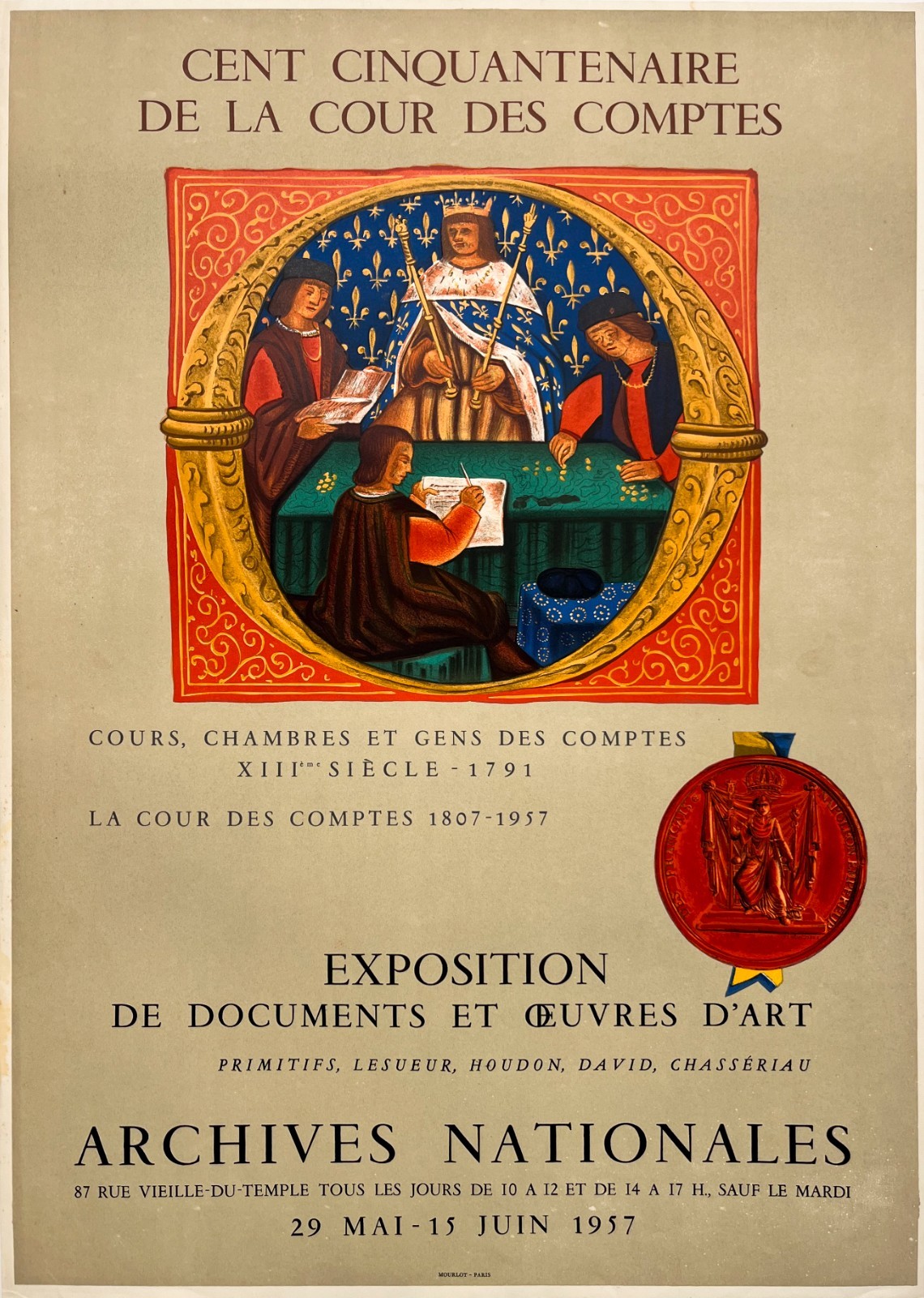 La Cour des Comptes aux Archives Nationales – Affiche Expo Litho Mourlot 1957