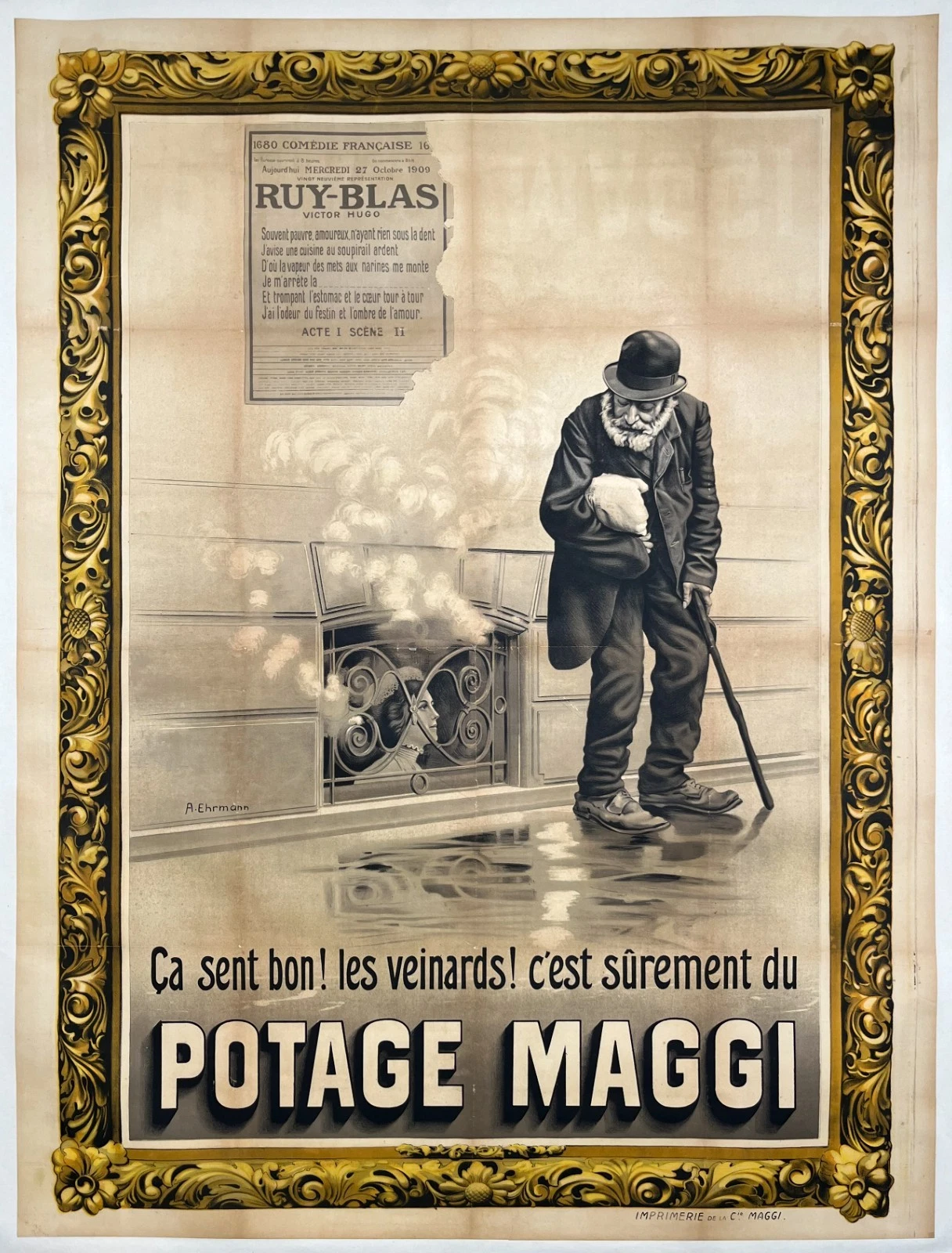 - A.B.E. C = Assez bon état : l’image présente des défauts importants, les marges comportent des défauts altérant l’aspect général de l’affiche, les couleurs sont délavées, des manques de papier altérant l’image avec une gravité pour l’aspect général de l’affiche, les déchirures touchent ou altèrent l’image et l’aspect général de l’affiche, l’affiche comporte des restaurations marquées dans l’image et ailleurs, des manques restaurés importants.
