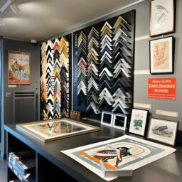Nous vous proposons un service complet d’encadrement sur mesure, adapté à chaque œuvre et à chaque besoin. Grâce à un large choix de baguettes – classiques, contemporaines, sobres ou décoratives – nous concevons des encadrements personnalisés, en harmonie avec l’esthétique de l’œuvre et de son environnement. Soucieux de la conservation, nous utilisons des verres de protection anti-UV pour limiter le vieillissement des encres et pigments, ainsi que des matériaux neutres, sans acide, conformes aux exigences de la conservation préventive. Chaque encadrement est réalisé à la main dans notre atelier, avec rigueur, sens artistique et respect de l’objet.